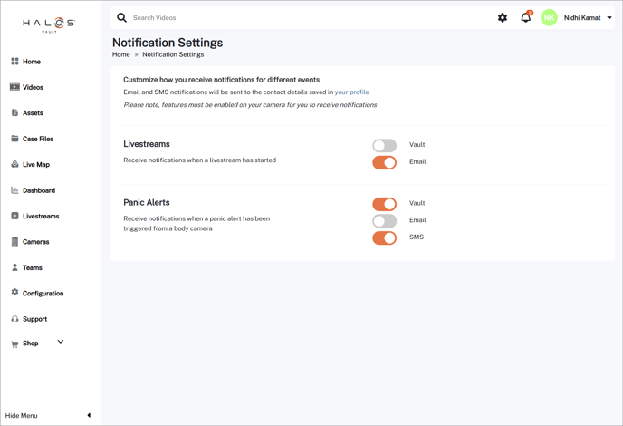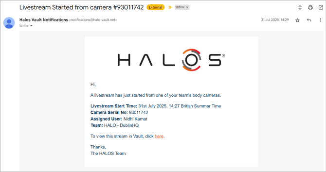 - Livestreams: Get notified when a camera in your team starts a livestream